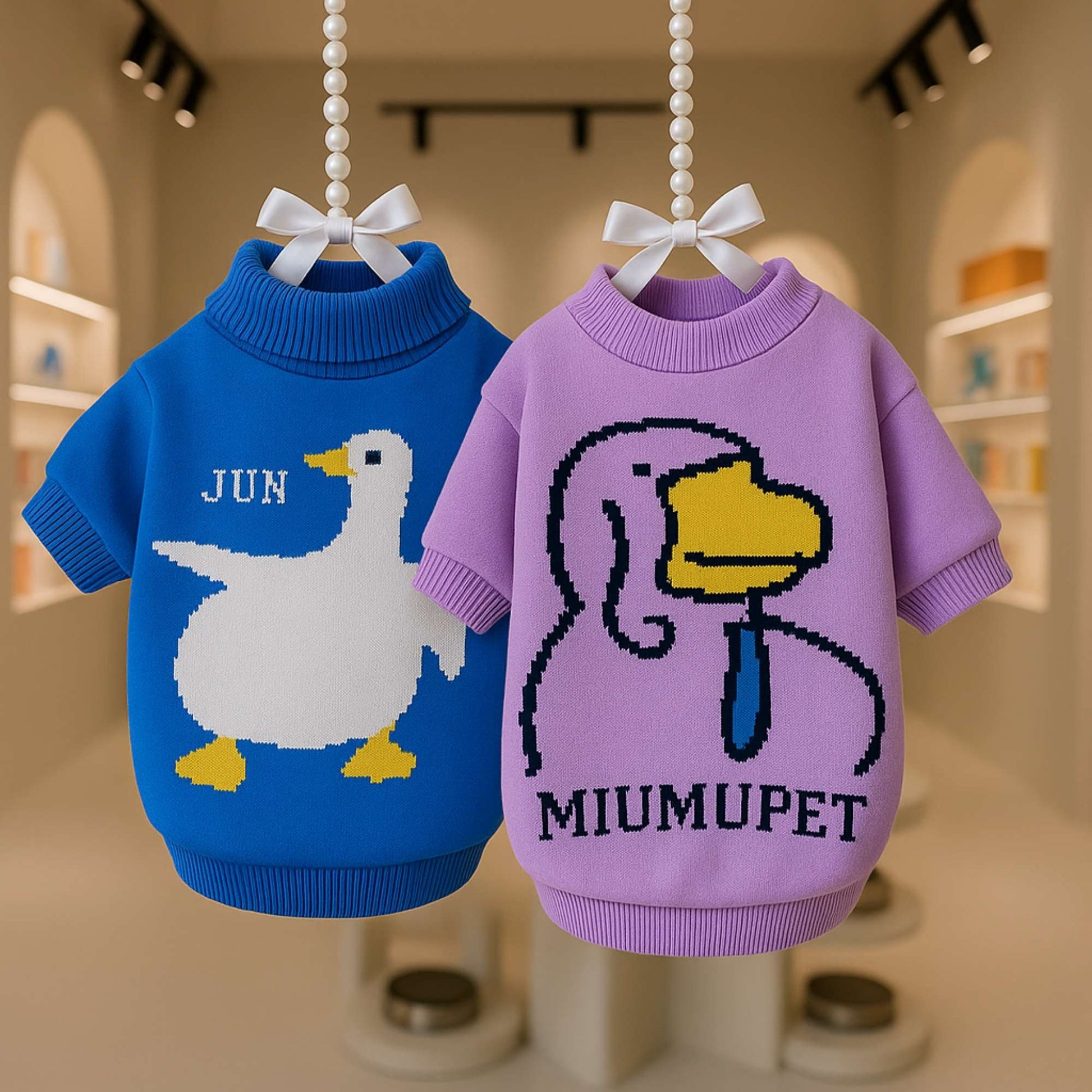 GalleryPop - Sueter de Hilo para Perros, con estampados divertidos de patos que aportan un look único y una textura suave que brinda abrigo y comodidad. Compra en Wompet Perú con envíos a todo el país.